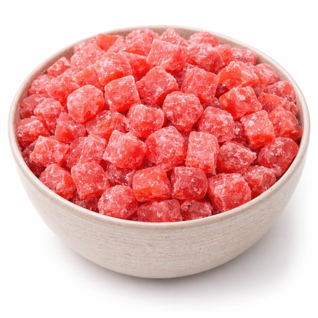 Delicious Natural Strawberry Cubes made from real strawberries, gently dried to lock in their bright color and sweet-tart flavor. These soft, chewy cubes offer a refreshing fruity taste in every bite. Perfect for healthy snacking, baking, desserts, cereals, and trail mixes. No artificial colors or flavors—just pure strawberry goodness.